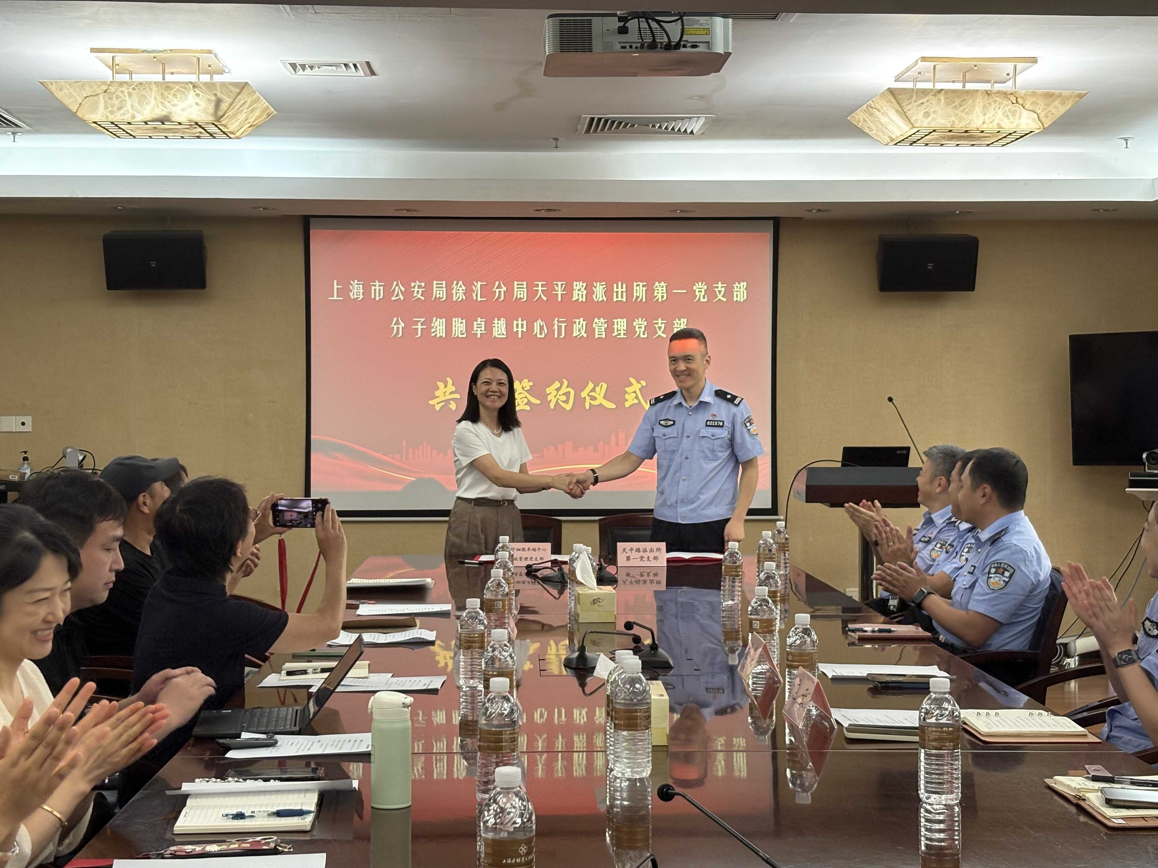 會(huì)上,分子細(xì)胞卓越中心行政管理黨支部與上海市公安局徐匯分局天平路派出所第一黨支部共同簽署《黨建共建協(xié)議書(shū)》,友好約定全面推進(jìn)黨組織建設(shè),搭建共建平臺(tái),努力實(shí)現(xiàn)雙向賦能合力共贏的黨建新模式。