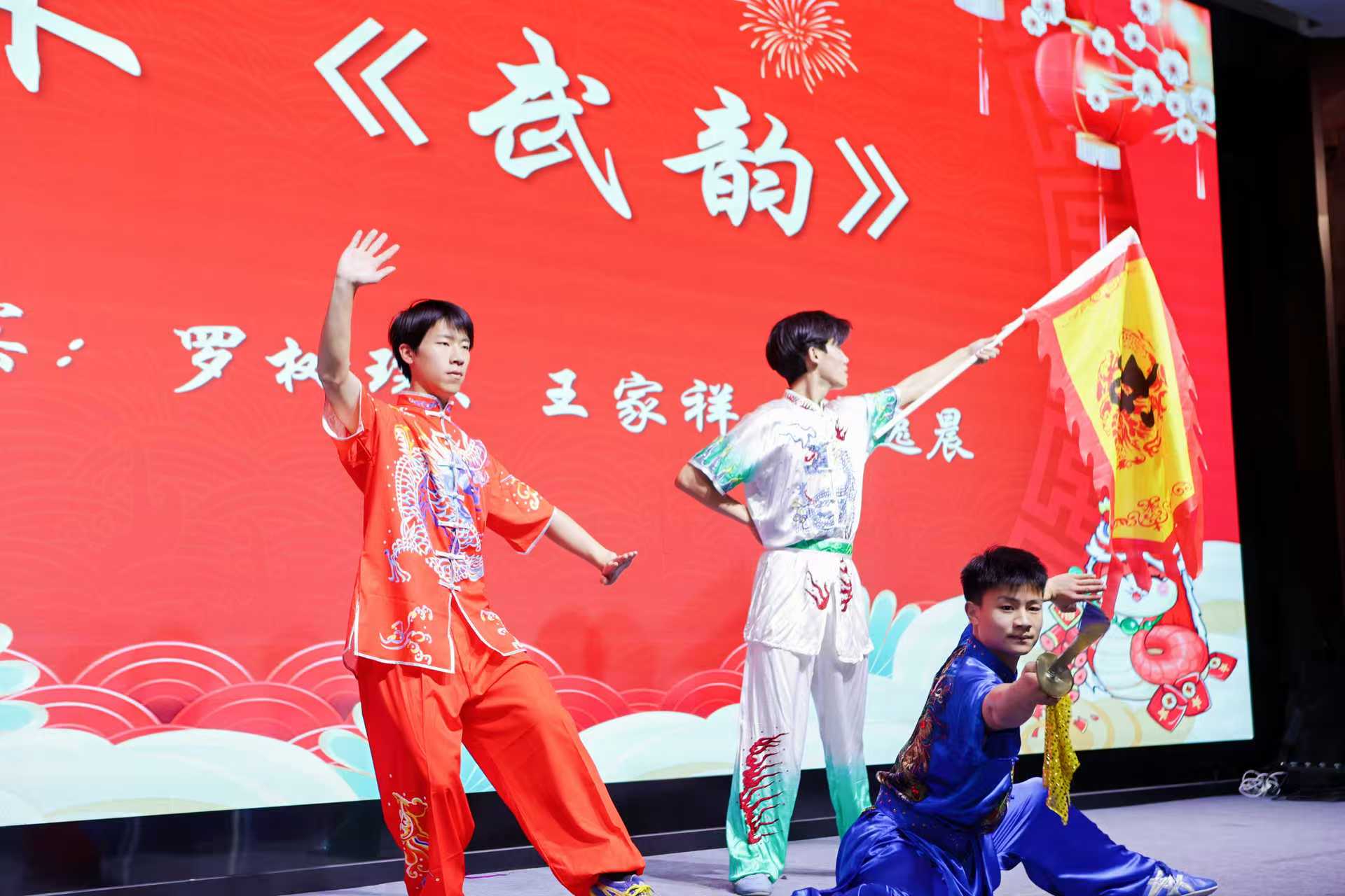 “傳承與創(chuàng)新” 篇章中,武術表演《武韻》剛健有力,表演者們動作行云流水,將中華武術的精氣神展現(xiàn)得淋漓盡致,傳遞著堅韌不拔的傳承精神。朗誦《祖國的春天》深情激昂,訴說著新時代的花朵們對祖國的熱愛與對未來的憧憬。新 PI 代表帶來的歌曲《新 PI 陣線聯(lián)盟》充滿活力,趣味不斷,表演結束后,他們依次介紹自己,用各具特色的家鄉(xiāng)話為同學們送上新年祝福,鄉(xiāng)音傳遞著濃濃的關愛與期許,彰顯著科研新生力量的朝氣與擔當。