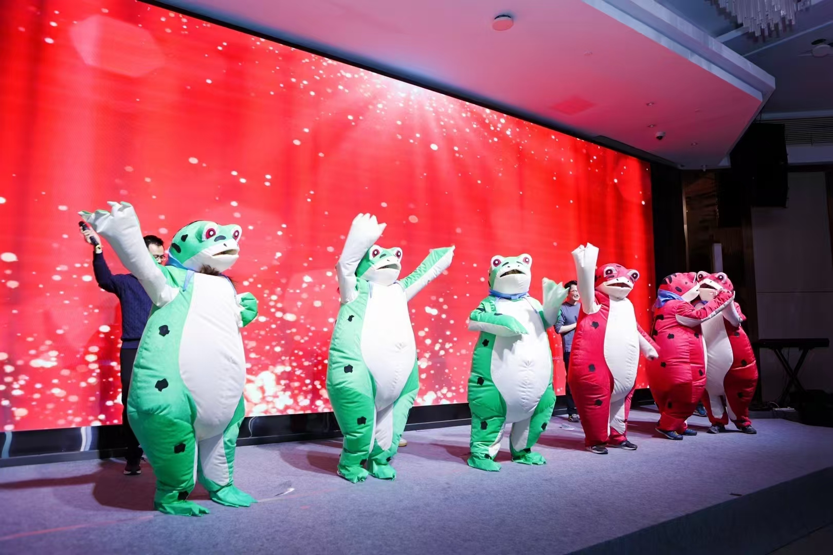 “閃亮的日子” 篇章洋溢著溫馨與歡樂?;@球操《本草綱目辣不辣》動感十足,表演者們活力迸發(fā),點燃了現(xiàn)場的熱烈氣氛。退休職工代表帶來的小組唱《閃亮的日子》,歌聲悠揚婉轉,仿佛帶領大家回溯那些美好的舊時光。中心四位PI組成的 “老男孩組合” 驚喜現(xiàn)身,他們共同演唱《光輝歲月》《直到世界盡頭》。熟悉的旋律響起,激昂的歌聲中飽含著對往昔奮斗歲月的深情回顧,以及對未來的堅定信念,引發(fā)了全場的強烈共鳴,將現(xiàn)場氣氛推向高潮。抽獎環(huán)節(jié)穿插其中,驚喜連連,歡聲笑語回蕩在整個大廳,盡顯中心大家庭的溫暖與融洽。
