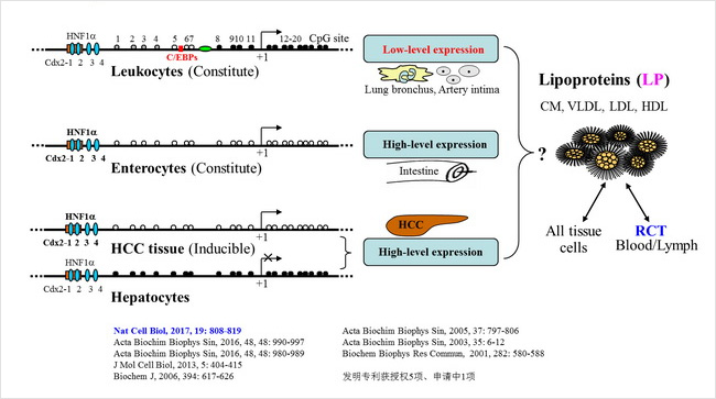 實驗室一直從事生化、分子生物學(xué)等方面工作,研究方向先為基因的表達功能、后聚焦于固醇代謝平衡?生理病理調(diào)控?靶標系統(tǒng)創(chuàng)建,主要圍繞膽固醇代謝關(guān)鍵酶表達功能和固醇轉(zhuǎn)運調(diào)控,長期與美國Dartmouth醫(yī)學(xué)院TY Chang教授合作,著重研究細胞膽固醇代謝平衡關(guān)鍵酶--?;o酶A:膽固醇?;D(zhuǎn)移酶(ACAT)的表達功能,探索ACAT的基因結(jié)構(gòu)、轉(zhuǎn)錄剪接、翻譯修飾、表達調(diào)控、功能模式及其與膽固醇代謝平衡的生理功能、病理變化等關(guān)系,包括與細胞質(zhì)膜游離膽固醇的動態(tài)平衡、細胞膽固醇及其代謝物固醇的載運特異脂蛋白分泌外排和轉(zhuǎn)運調(diào)控、動脈粥樣硬化(AS)病(如冠心病、中風(fēng))、神經(jīng)退行性疾病(如老年癡呆癥,AD)、癌癥(如肝癌,HCC)等關(guān)系,深入ACAT靶標系統(tǒng)創(chuàng)建及新藥研發(fā)等,取得了系統(tǒng)性前沿原創(chuàng)成果。