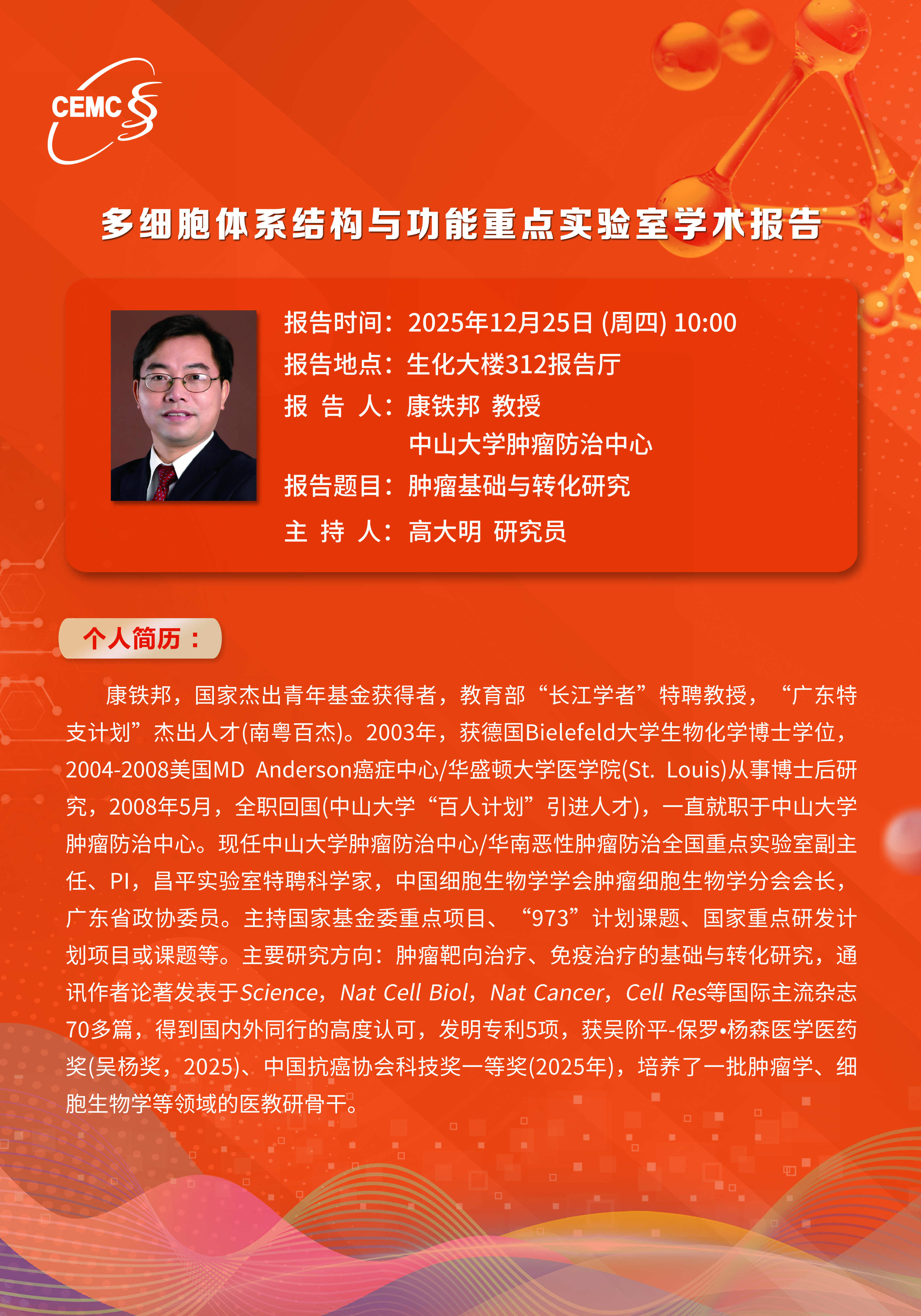中山大學腫瘤防治中心?康鐵邦 教授:腫瘤基礎(chǔ)與轉(zhuǎn)化研究